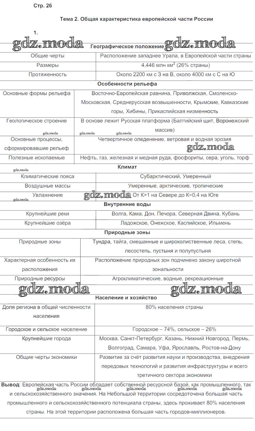 ГДЗ решение к заданию № 26 География 9 класс Рабочая тетрадь с комплектом контурных карт Баринова И.И. Экзамен 2019 ФГОС бесплатно на гдз.мода!