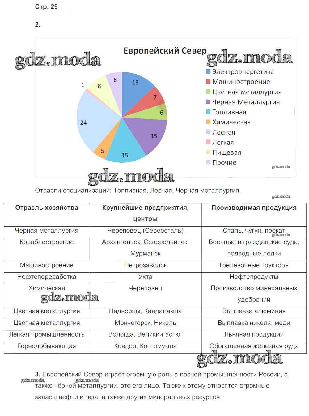 ГДЗ решение к заданию № 29 География 9 класс Рабочая тетрадь с комплектом контурных карт Баринова И.И. Экзамен 2019 ФГОС бесплатно на гдз.мода!