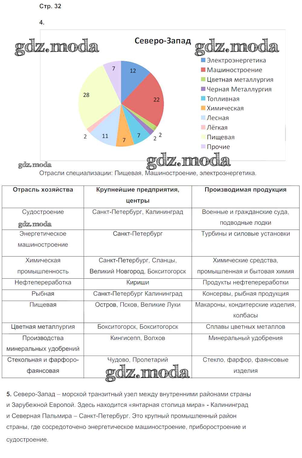 ГДЗ решение к заданию № 32 География 9 класс Рабочая тетрадь с комплектом контурных карт Баринова И.И. Экзамен 2019 ФГОС бесплатно на гдз.мода!