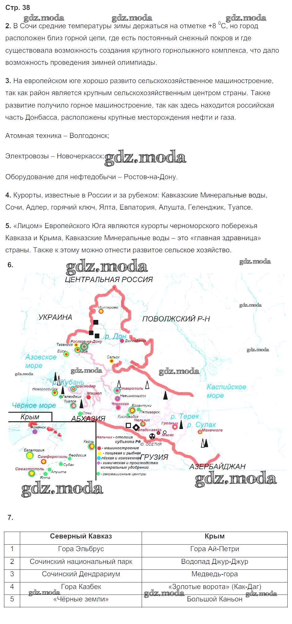 ГДЗ решение к заданию № 38 География 9 класс Рабочая тетрадь с комплектом контурных карт Баринова И.И. Экзамен 2019 ФГОС бесплатно на гдз.мода!