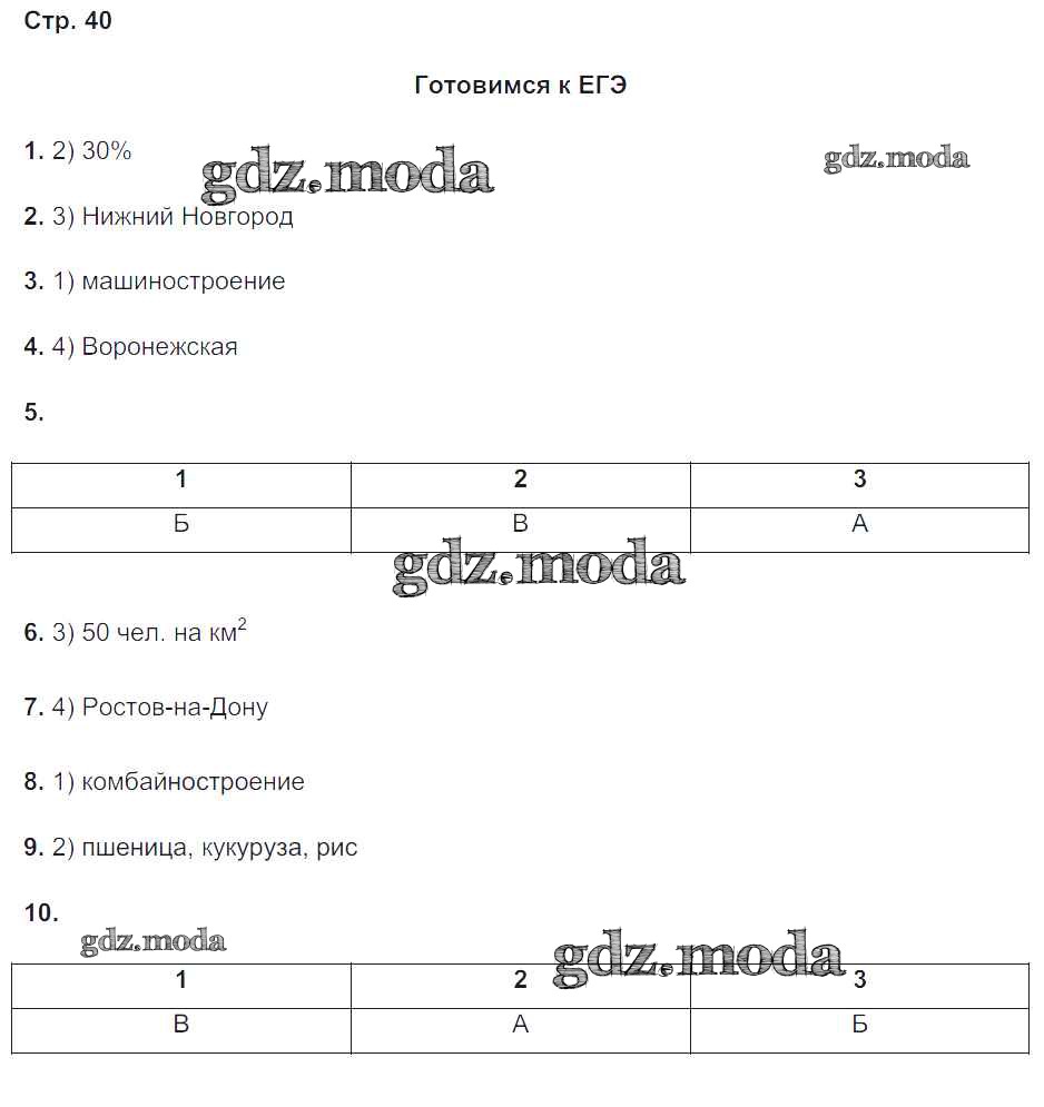ГДЗ решение к заданию № 40 География 9 класс Рабочая тетрадь с комплектом контурных карт Баринова И.И. Экзамен 2019 ФГОС бесплатно на гдз.мода!