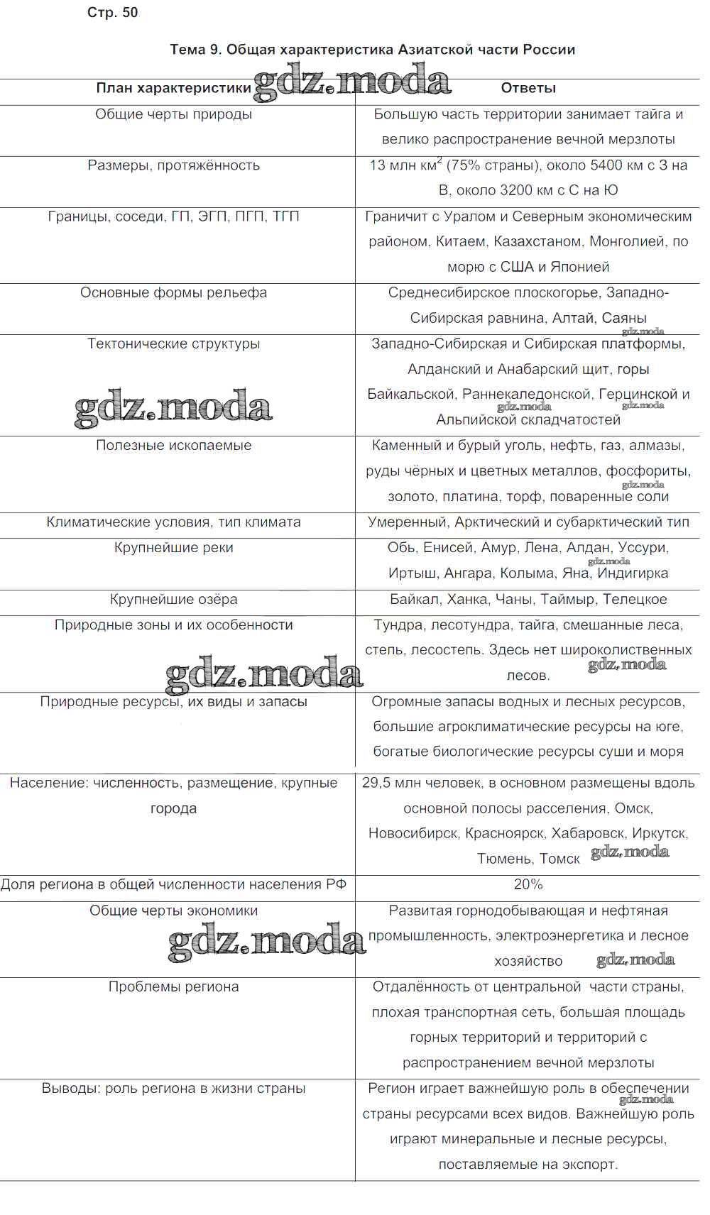 ГДЗ решение к заданию № 50 География 9 класс Рабочая тетрадь с комплектом контурных карт Баринова И.И. Экзамен 2019 ФГОС бесплатно на гдз.мода!