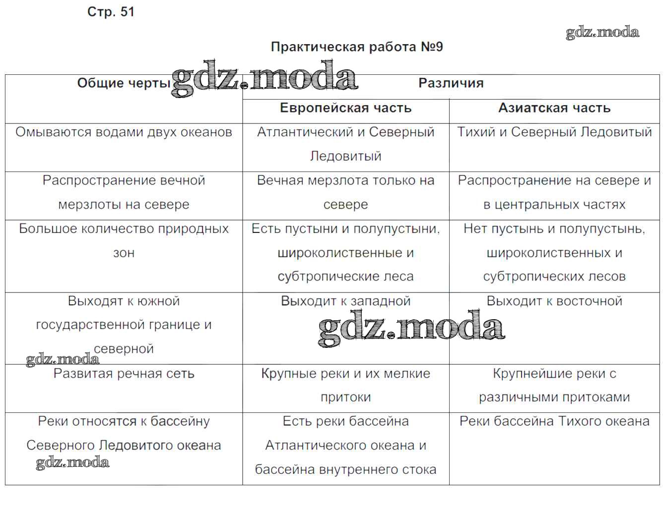 ГДЗ решение к заданию № 51 География 9 класс Рабочая тетрадь с комплектом контурных карт Баринова И.И. Экзамен 2019 ФГОС бесплатно на гдз.мода!