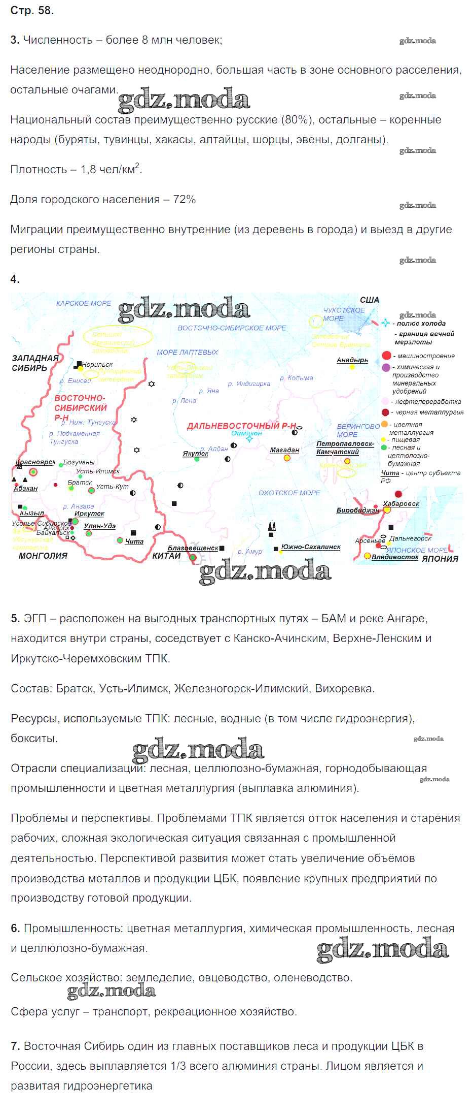 ГДЗ решение к заданию № 58 География 9 класс Рабочая тетрадь с комплектом контурных карт Баринова И.И. Экзамен 2019 ФГОС бесплатно на гдз.мода!