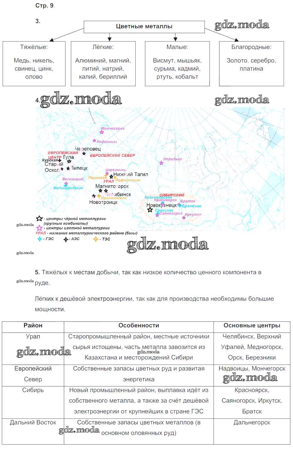 ГДЗ решение к заданию № 9 География 9 класс Рабочая тетрадь с комплектом контурных карт Баринова И.И. Экзамен 2019 ФГОС бесплатно на гдз.мода!