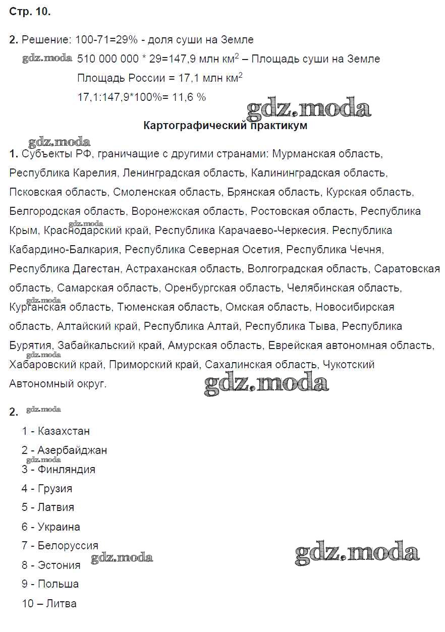 ГДЗ решение к заданию № 10 География 9 класс Рабочая тетрадь Домогацких Е.М. (к уч. Домогацких) Русское слово 2018 ФГОС бесплатно на гдз.мода!
