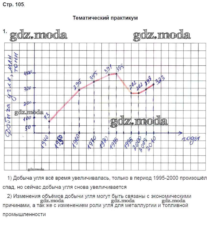 ГДЗ решение к заданию № 105 География 9 класс Рабочая тетрадь Домогацких Е.М. (к уч. Домогацких) Русское слово 2018 ФГОС бесплатно на гдз.мода!