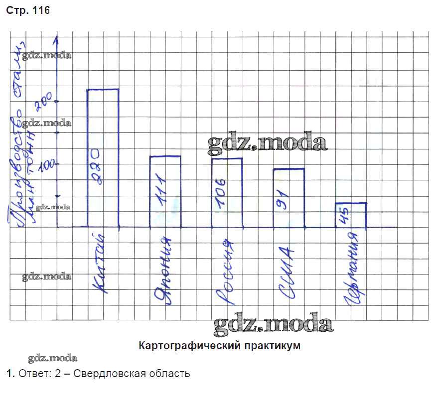 ГДЗ решение к заданию № 116 География 9 класс Рабочая тетрадь Домогацких Е.М. (к уч. Домогацких) Русское слово 2018 ФГОС бесплатно на гдз.мода!