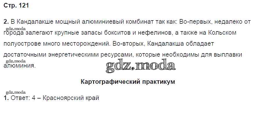 ГДЗ решение к заданию № 121 География 9 класс Рабочая тетрадь Домогацких Е.М. (к уч. Домогацких) Русское слово 2018 ФГОС бесплатно на гдз.мода!