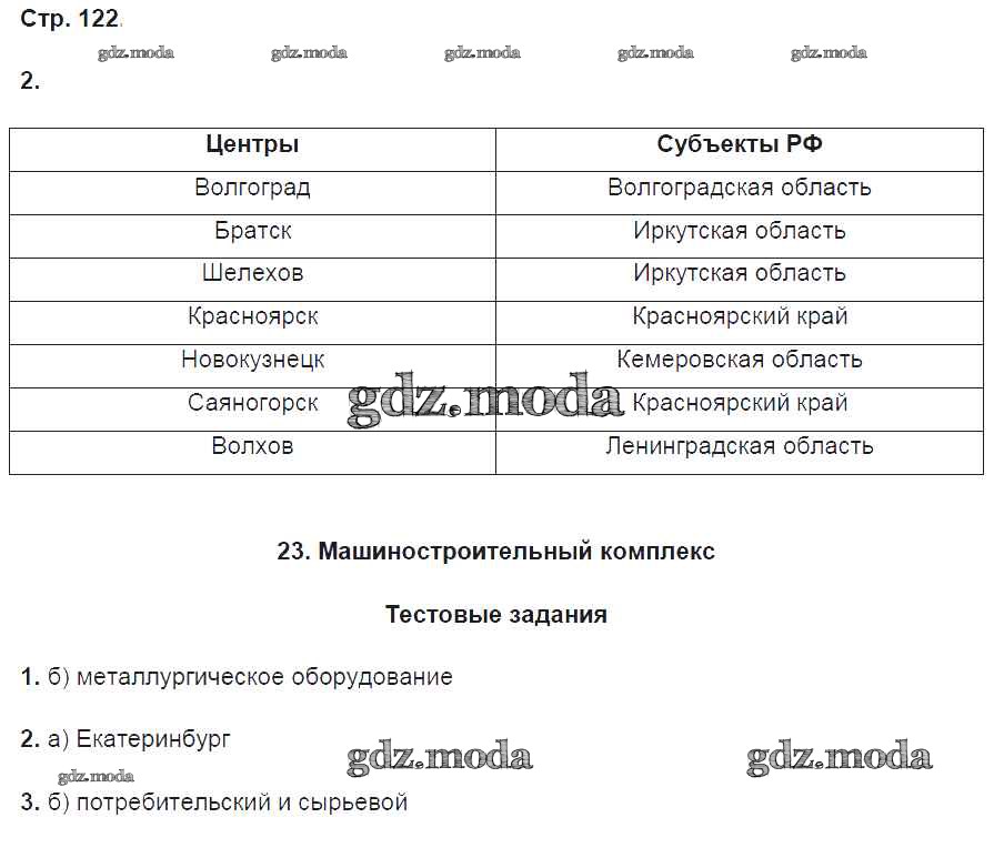 ГДЗ решение к заданию № 122 География 9 класс Рабочая тетрадь Домогацких Е.М. (к уч. Домогацких) Русское слово 2018 ФГОС бесплатно на гдз.мода!