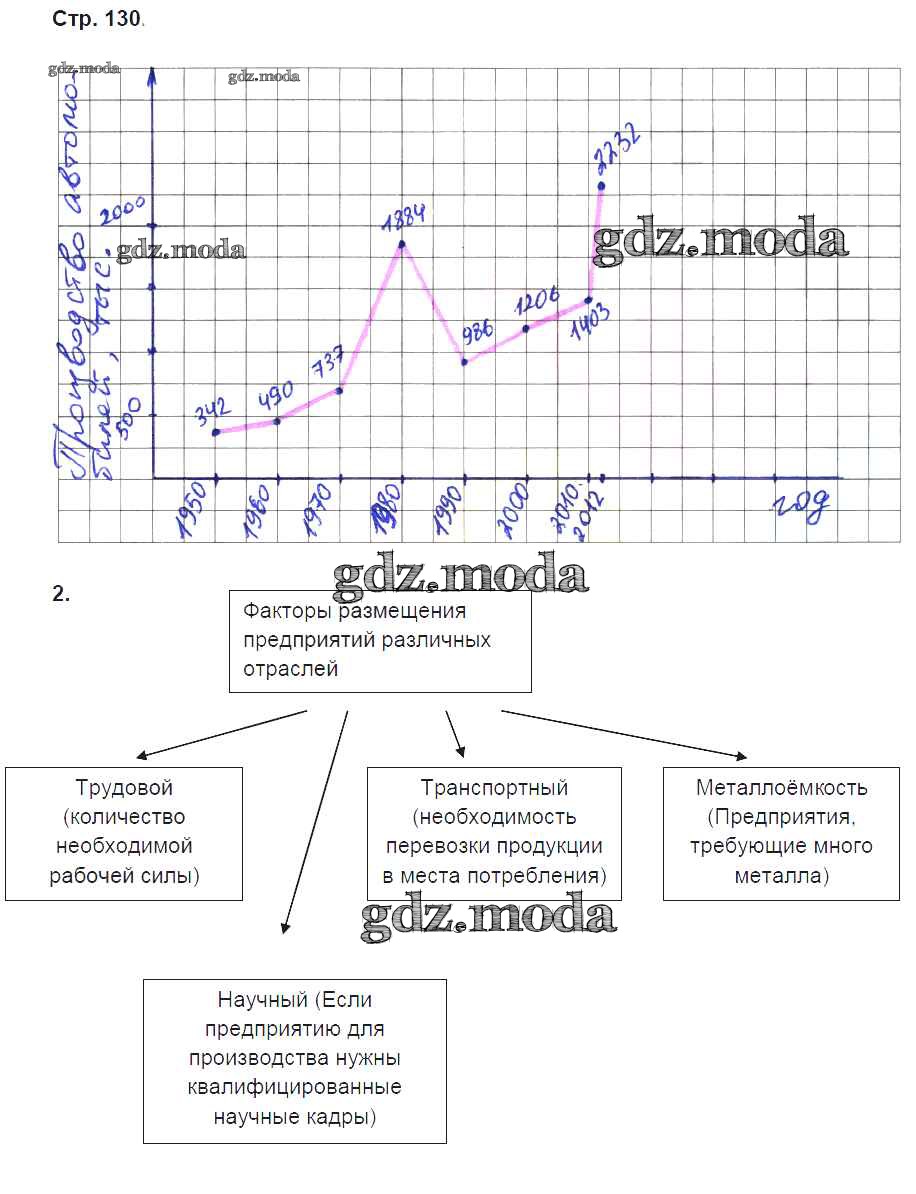 ГДЗ решение к заданию № 130 География 9 класс Рабочая тетрадь Домогацких Е.М. (к уч. Домогацких) Русское слово 2018 ФГОС бесплатно на гдз.мода!