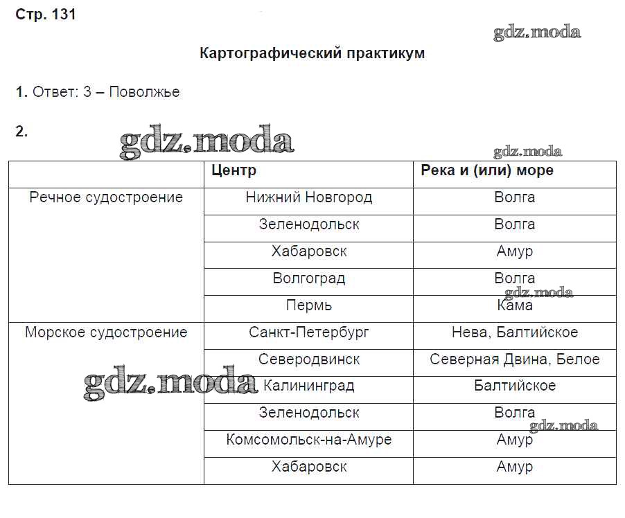 ГДЗ решение к заданию № 131 География 9 класс Рабочая тетрадь Домогацких Е.М. (к уч. Домогацких) Русское слово 2018 ФГОС бесплатно на гдз.мода!