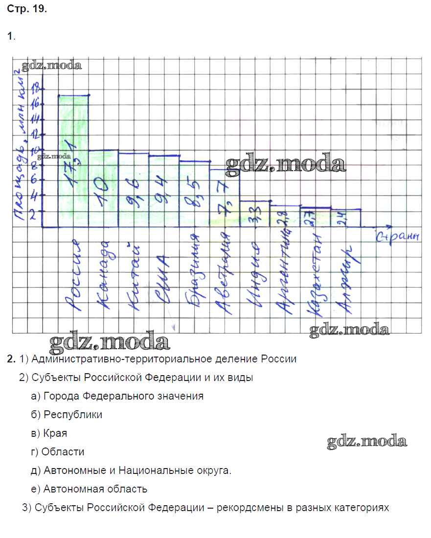 ГДЗ решение к заданию № 19 География 9 класс Рабочая тетрадь Домогацких Е.М. (к уч. Домогацких) Русское слово 2018 ФГОС бесплатно на гдз.мода!
