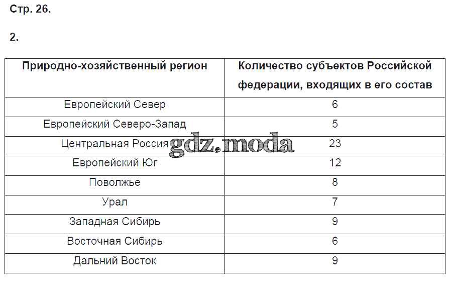 ГДЗ решение к заданию № 26 География 9 класс Рабочая тетрадь Домогацких Е.М. (к уч. Домогацких) Русское слово 2018 ФГОС бесплатно на гдз.мода!
