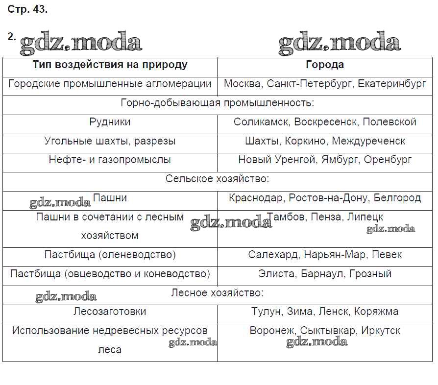 ГДЗ решение к заданию № 43 География 9 класс Рабочая тетрадь Домогацких Е.М. (к уч. Домогацких) Русское слово 2018 ФГОС бесплатно на гдз.мода!
