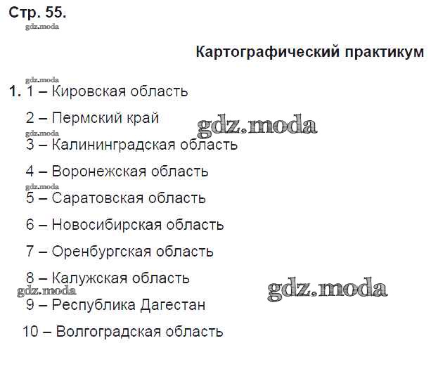 ГДЗ решение к заданию № 55 География 9 класс Рабочая тетрадь Домогацких Е.М. (к уч. Домогацких) Русское слово 2018 ФГОС бесплатно на гдз.мода!