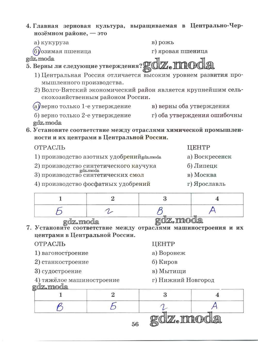 ГДЗ решение к заданию № 56 География 9 класс Рабочая тетрадь Домогацких Е.М. (к уч. Домогацких) Русское слово 2018 ФГОС бесплатно на гдз.мода!