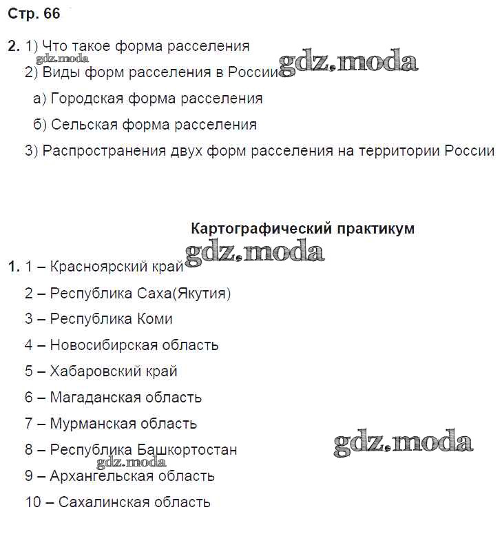 ГДЗ решение к заданию № 66 География 9 класс Рабочая тетрадь Домогацких Е.М. (к уч. Домогацких) Русское слово 2018 ФГОС бесплатно на гдз.мода!