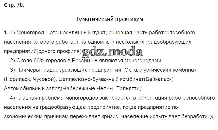 ГДЗ решение к заданию № 70 География 9 класс Рабочая тетрадь Домогацких Е.М. (к уч. Домогацких) Русское слово 2018 ФГОС бесплатно на гдз.мода!