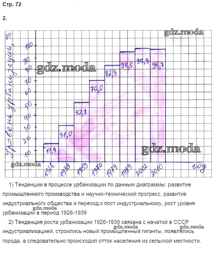 ГДЗ решение к заданию № 72 География 9 класс Рабочая тетрадь Домогацких Е.М. (к уч. Домогацких) Русское слово 2018 ФГОС бесплатно на гдз.мода!