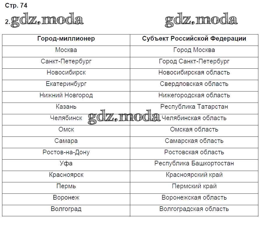 ГДЗ решение к заданию № 74 География 9 класс Рабочая тетрадь Домогацких Е.М. (к уч. Домогацких) Русское слово 2018 ФГОС бесплатно на гдз.мода!
