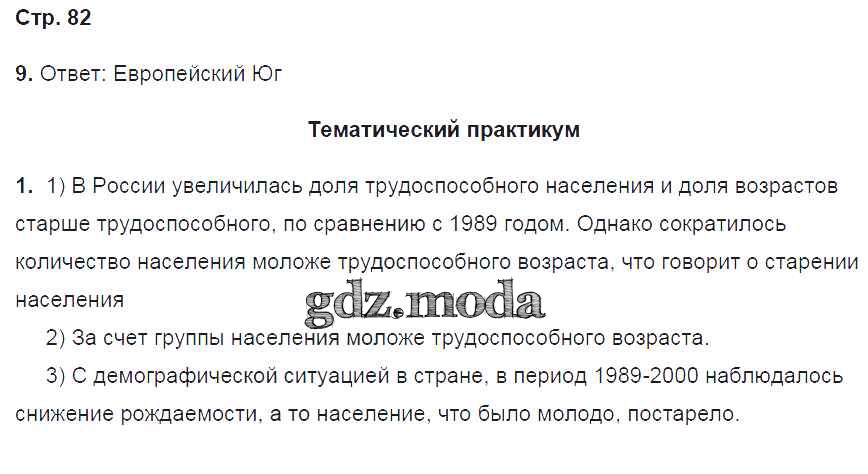 ГДЗ решение к заданию № 82 География 9 класс Рабочая тетрадь Домогацких Е.М. (к уч. Домогацких) Русское слово 2018 ФГОС бесплатно на гдз.мода!