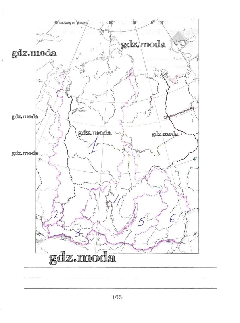ГДЗ решение к заданию № 105 География 9 класс Рабочая тетрадь Домогацких Е.М. (к уч. Домогацких) Русское слово 2018 ФГОС бесплатно на гдз.мода!