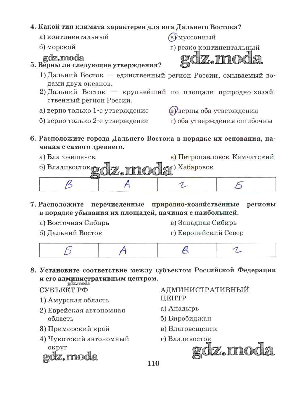 ГДЗ решение к заданию № 110 География 9 класс Рабочая тетрадь Домогацких Е.М. (к уч. Домогацких) Русское слово 2018 ФГОС бесплатно на гдз.мода!