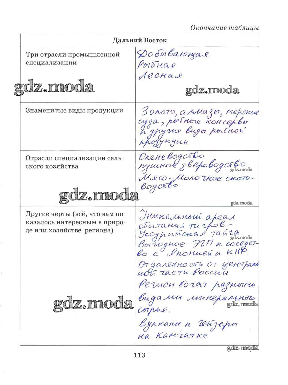 ГДЗ решение к заданию № 113 География 9 класс Рабочая тетрадь Домогацких Е.М. (к уч. Домогацких) Русское слово 2018 ФГОС бесплатно на гдз.мода!