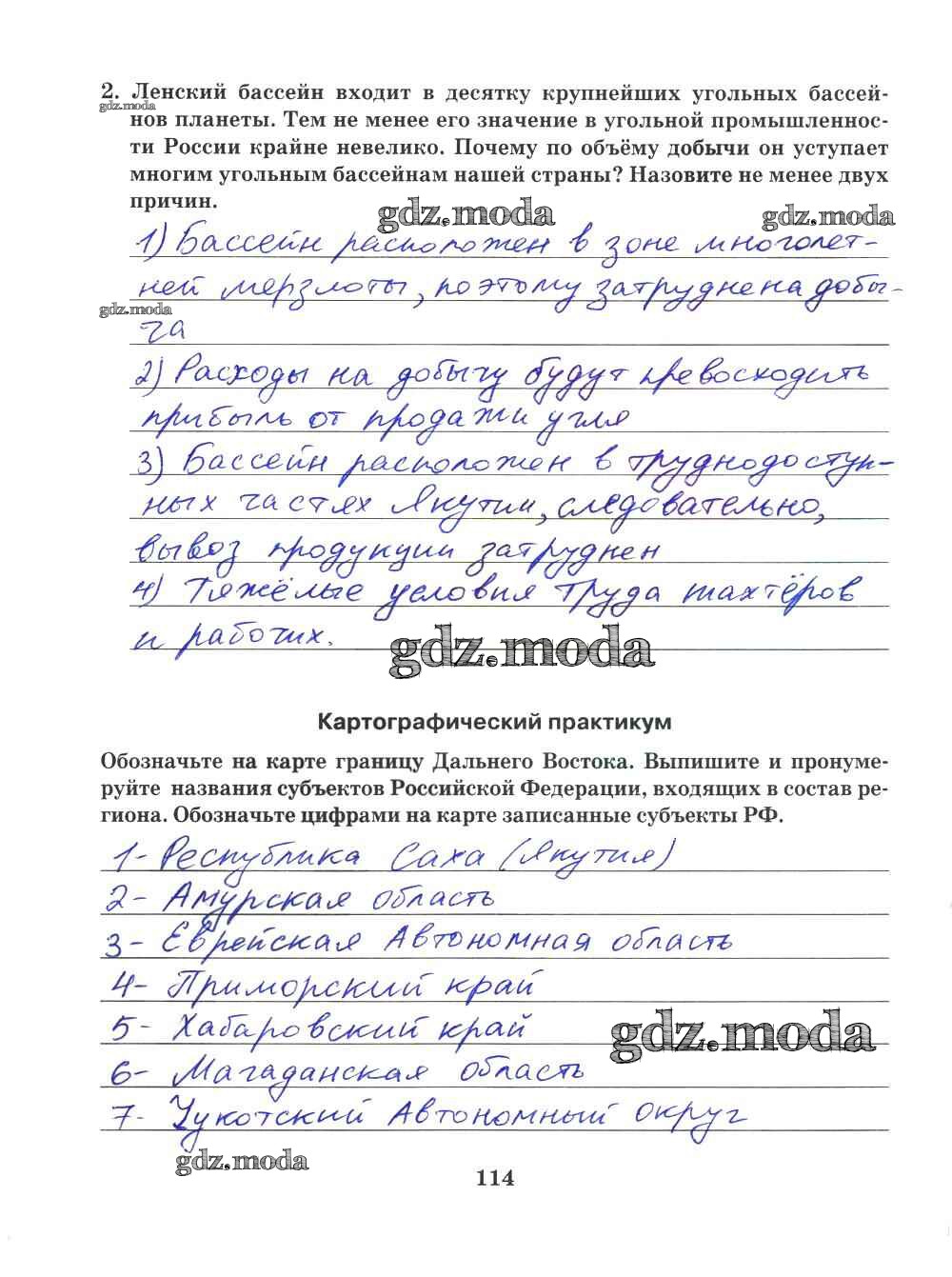 ГДЗ решение к заданию № 114 География 9 класс Рабочая тетрадь Домогацких Е.М. (к уч. Домогацких) Русское слово 2018 ФГОС бесплатно на гдз.мода!