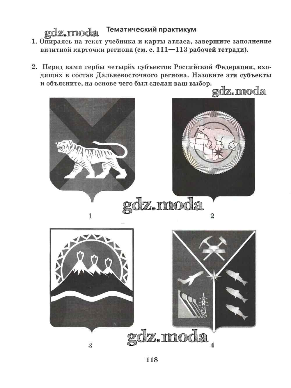 ГДЗ решение к заданию № 118 География 9 класс Рабочая тетрадь Домогацких Е.М. (к уч. Домогацких) Русское слово 2018 ФГОС бесплатно на гдз.мода!