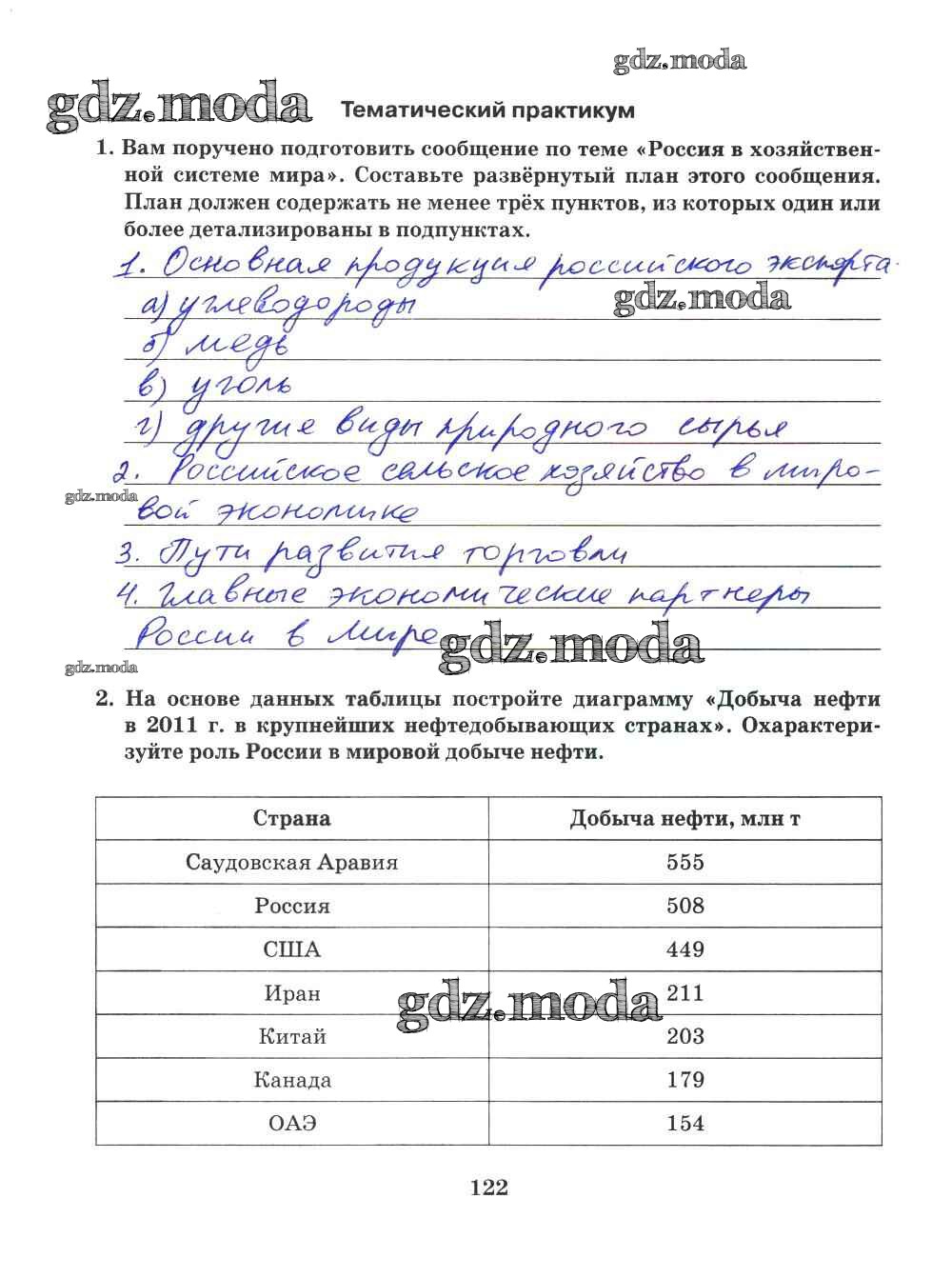 ГДЗ решение к заданию № 122 География 9 класс Рабочая тетрадь Домогацких Е.М. (к уч. Домогацких) Русское слово 2018 ФГОС бесплатно на гдз.мода!