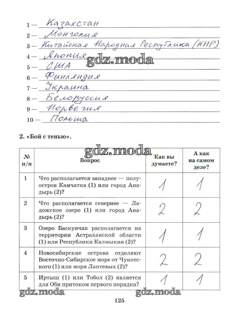 ГДЗ решение к заданию № 125 География 9 класс Рабочая тетрадь Домогацких Е.М. (к уч. Домогацких) Русское слово 2018 ФГОС бесплатно на гдз.мода!