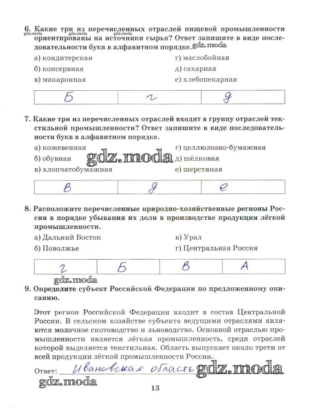 ГДЗ решение к заданию № 13 География 9 класс Рабочая тетрадь Домогацких Е.М. (к уч. Домогацких) Русское слово 2018 ФГОС бесплатно на гдз.мода!