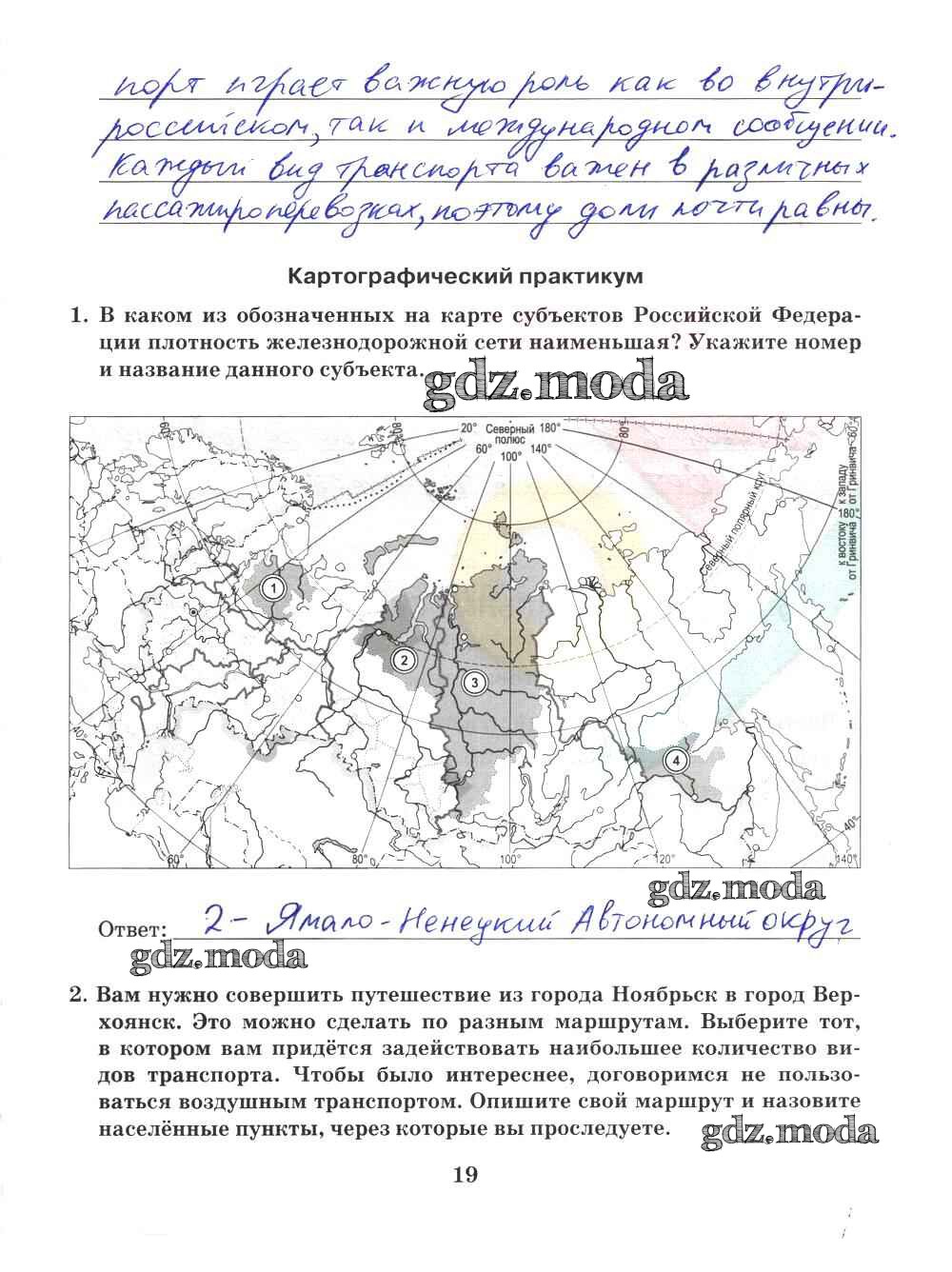 ГДЗ решение к заданию № 19 География 9 класс Рабочая тетрадь Домогацких Е.М. (к уч. Домогацких) Русское слово 2018 ФГОС бесплатно на гдз.мода!