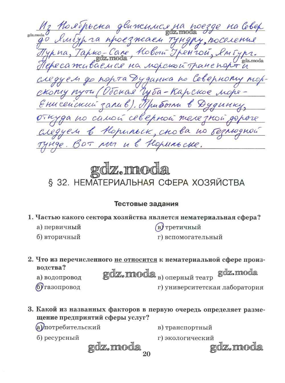 ГДЗ решение к заданию № 20 География 9 класс Рабочая тетрадь Домогацких Е.М. (к уч. Домогацких) Русское слово 2018 ФГОС бесплатно на гдз.мода!