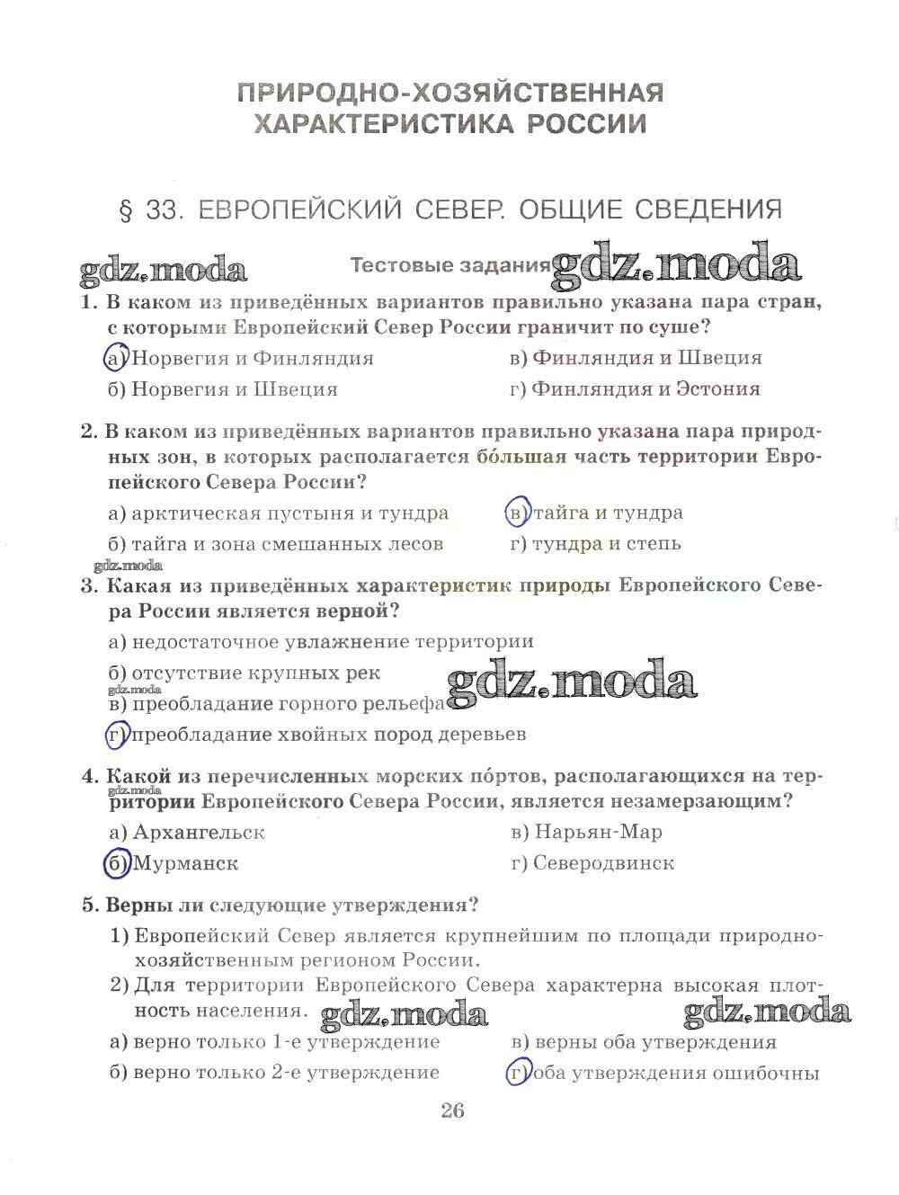 ГДЗ решение к заданию № 26 География 9 класс Рабочая тетрадь Домогацких Е.М. (к уч. Домогацких) Русское слово 2018 ФГОС бесплатно на гдз.мода!