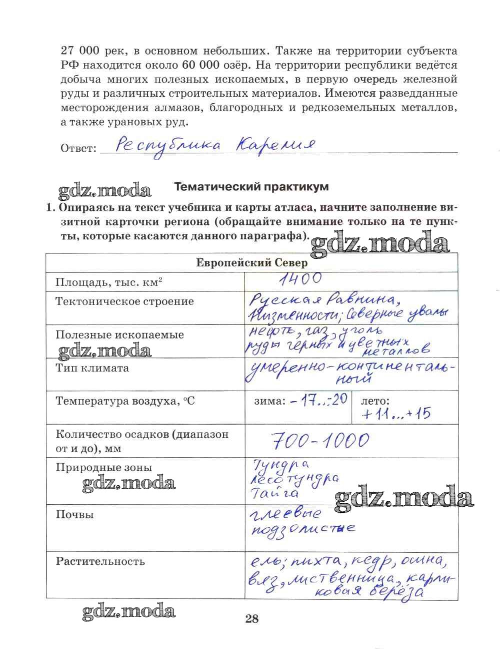ГДЗ решение к заданию № 28 География 9 класс Рабочая тетрадь Домогацких Е.М. (к уч. Домогацких) Русское слово 2018 ФГОС бесплатно на гдз.мода!
