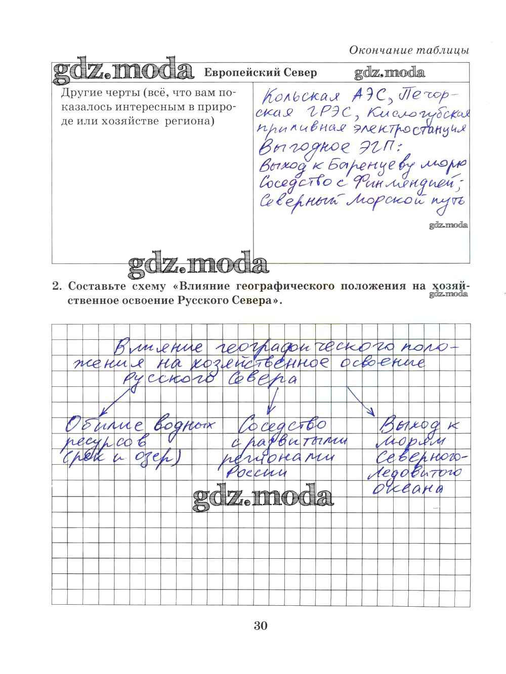 ГДЗ решение к заданию № 30 География 9 класс Рабочая тетрадь Домогацких Е.М. (к уч. Домогацких) Русское слово 2018 ФГОС бесплатно на гдз.мода!