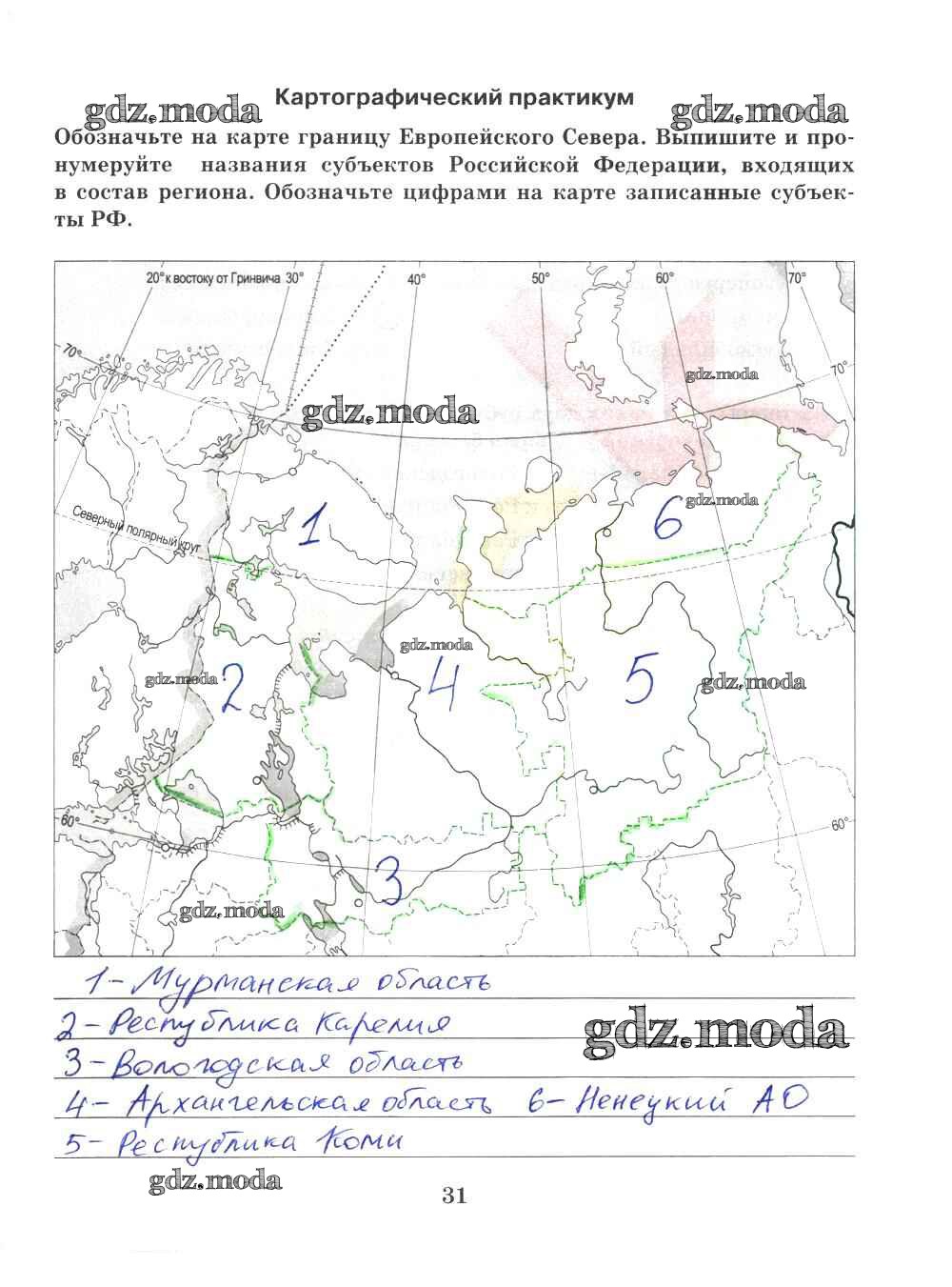 ГДЗ решение к заданию № 31 География 9 класс Рабочая тетрадь Домогацких Е.М. (к уч. Домогацких) Русское слово 2018 ФГОС бесплатно на гдз.мода!