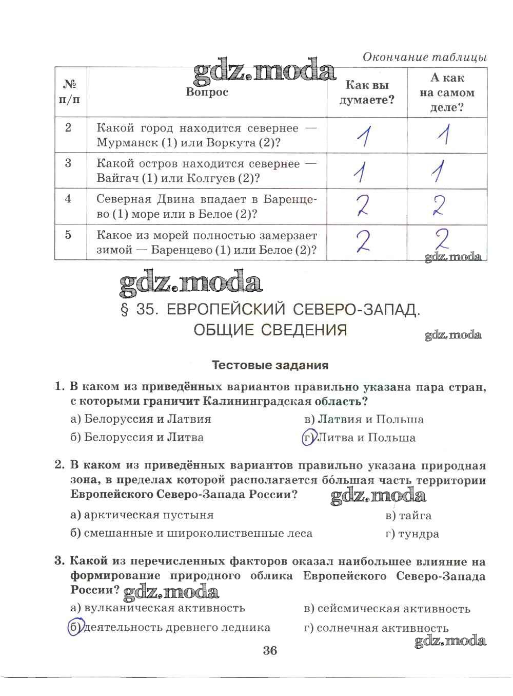 ГДЗ решение к заданию № 36 География 9 класс Рабочая тетрадь Домогацких Е.М. (к уч. Домогацких) Русское слово 2018 ФГОС бесплатно на гдз.мода!