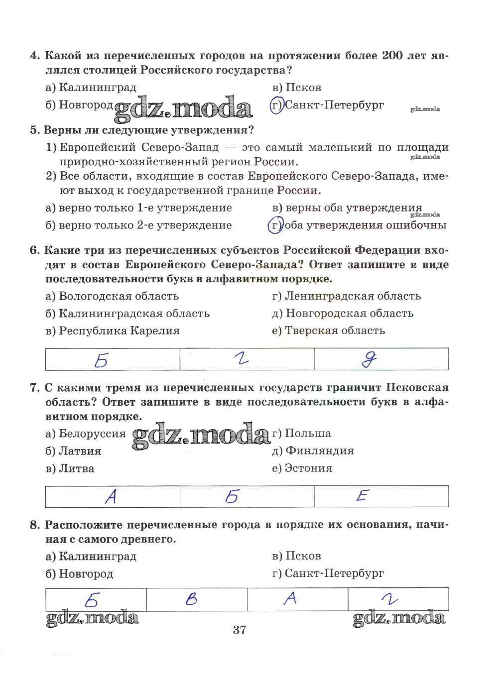 ГДЗ решение к заданию № 37 География 9 класс Рабочая тетрадь Домогацких Е.М. (к уч. Домогацких) Русское слово 2018 ФГОС бесплатно на гдз.мода!