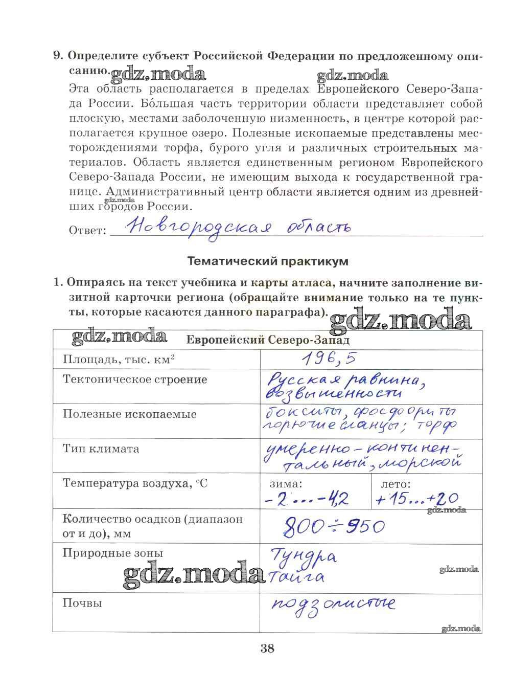 ГДЗ решение к заданию № 38 География 9 класс Рабочая тетрадь Домогацких Е.М. (к уч. Домогацких) Русское слово 2018 ФГОС бесплатно на гдз.мода!