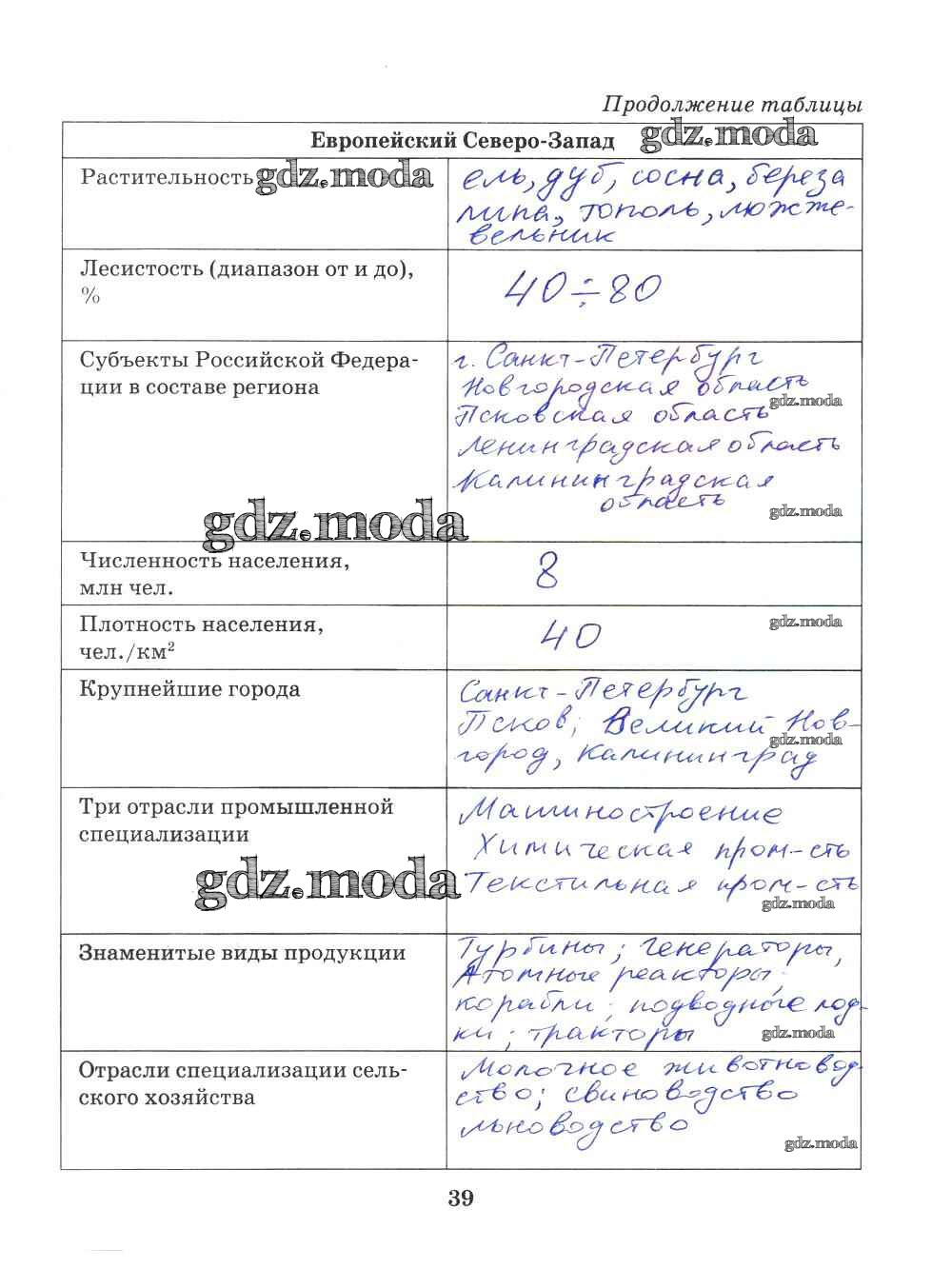 ГДЗ решение к заданию № 39 География 9 класс Рабочая тетрадь Домогацких Е.М. (к уч. Домогацких) Русское слово 2018 ФГОС бесплатно на гдз.мода!