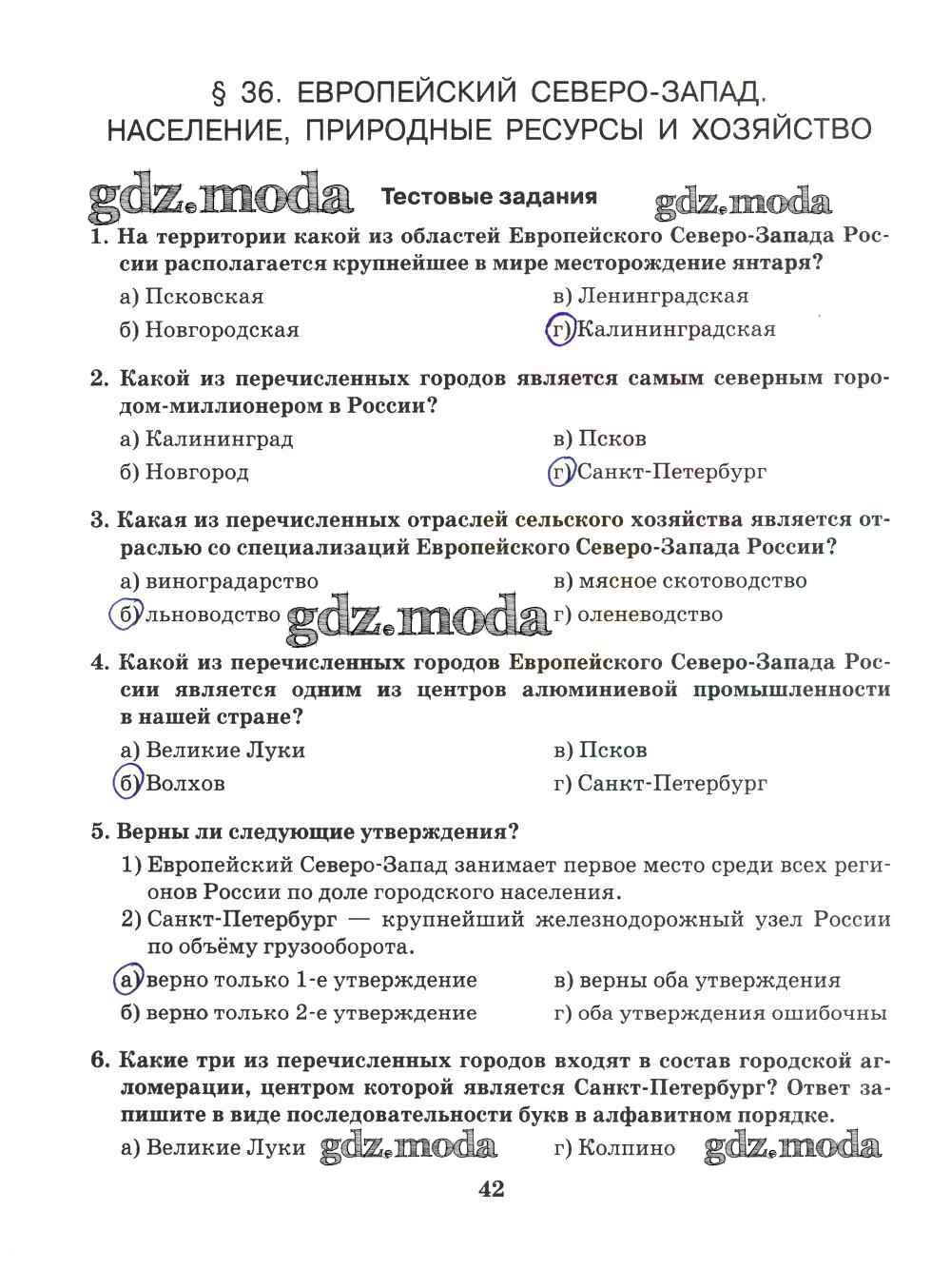 ГДЗ решение к заданию № 42 География 9 класс Рабочая тетрадь Домогацких Е.М. (к уч. Домогацких) Русское слово 2018 ФГОС бесплатно на гдз.мода!