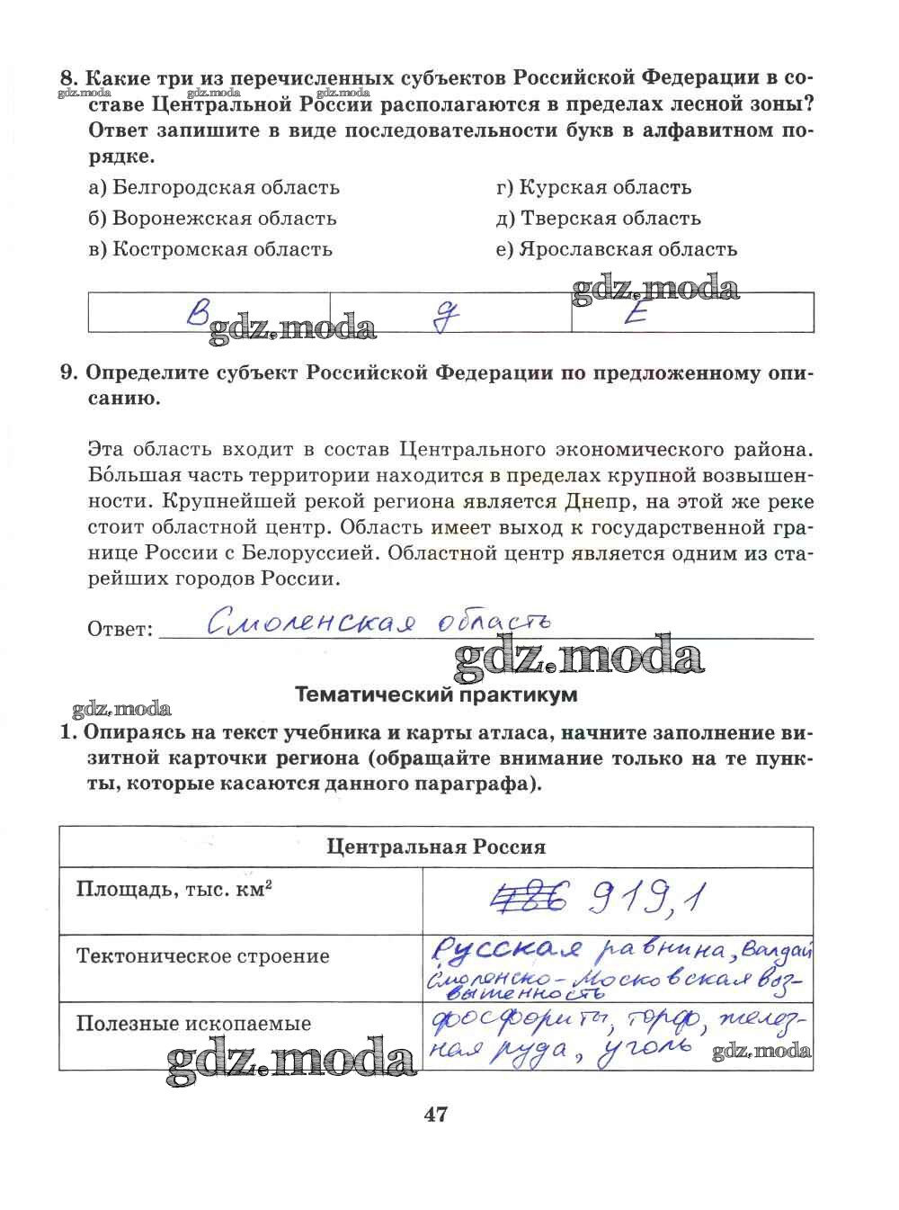 ГДЗ решение к заданию № 47 География 9 класс Рабочая тетрадь Домогацких Е.М. (к уч. Домогацких) Русское слово 2018 ФГОС бесплатно на гдз.мода!