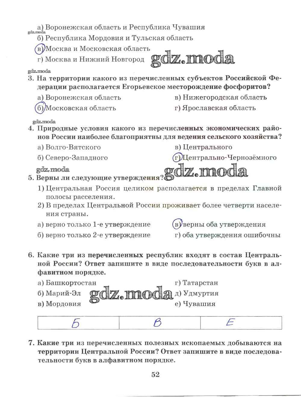 ГДЗ решение к заданию № 52 География 9 класс Рабочая тетрадь Домогацких Е.М. (к уч. Домогацких) Русское слово 2018 ФГОС бесплатно на гдз.мода!