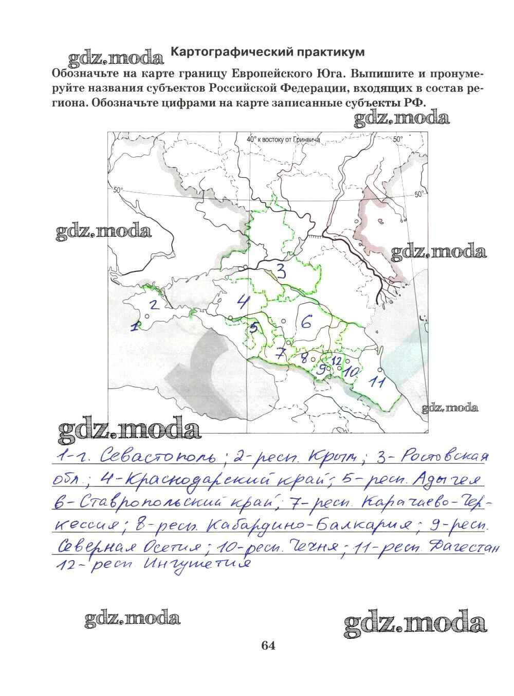 ГДЗ решение к заданию № 64 География 9 класс Рабочая тетрадь Домогацких Е.М. (к уч. Домогацких) Русское слово 2018 ФГОС бесплатно на гдз.мода!