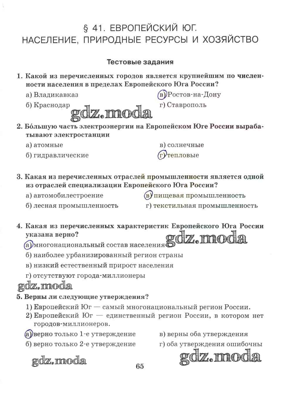 ГДЗ решение к заданию № 65 География 9 класс Рабочая тетрадь Домогацких Е.М. (к уч. Домогацких) Русское слово 2018 ФГОС бесплатно на гдз.мода!