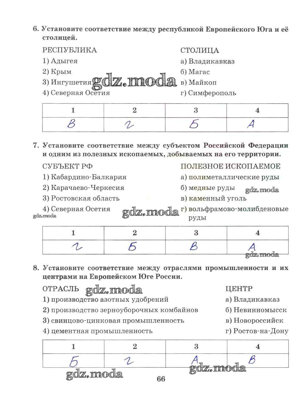 ГДЗ решение к заданию № 66 География 9 класс Рабочая тетрадь Домогацких Е.М. (к уч. Домогацких) Русское слово 2018 ФГОС бесплатно на гдз.мода!